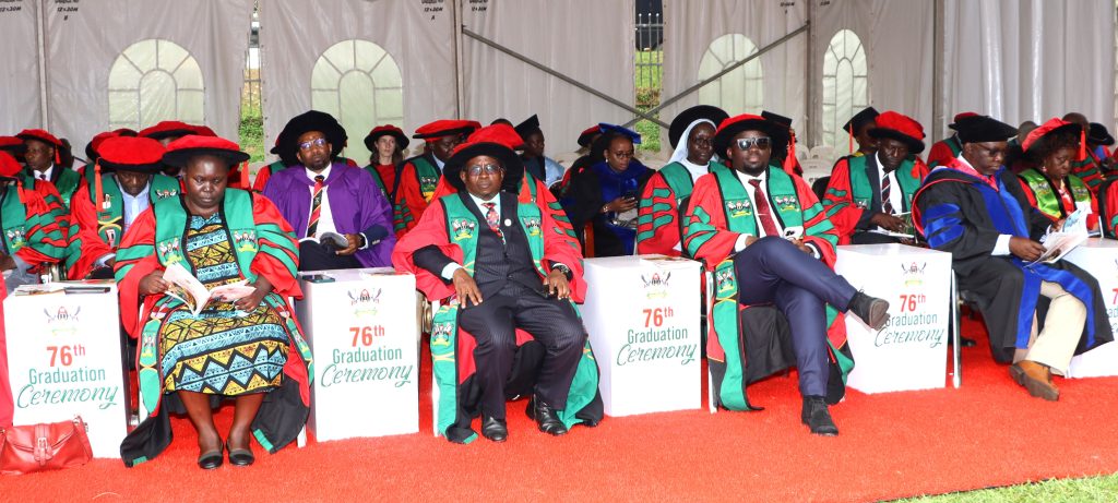 Dignitaries in attendance included government officials, members of the judiciary, Members of Parliament, representatives of the Diplomatic Corps, religious leaders, university council members led by Chairperson Dr. Lorna Magara, vice chancellors and principals of sister institutions, deputy vice chancellors, college principals, deans, members of Senate and management, security commanders, the Guild President, staff, parents, guardians, sponsors, development partners, and members of the media.